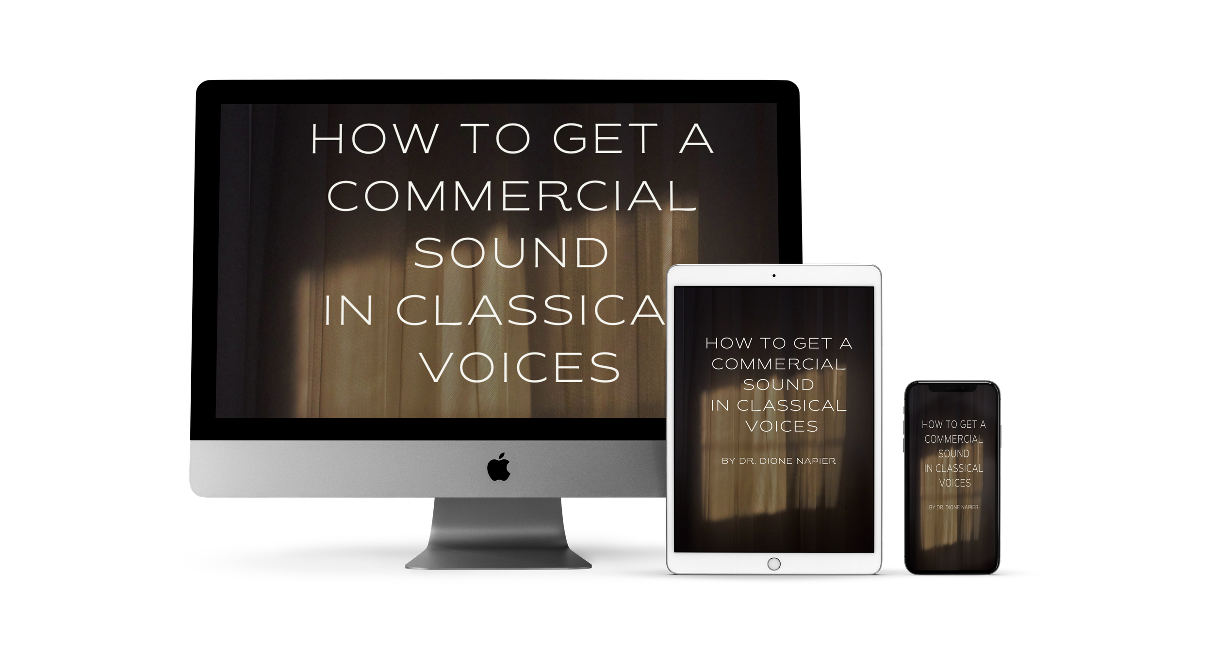 Want to get Dione’s tips for getting a commercial sound in classical voices? This simple resource guide is for purpose driven classical singers and voice teachers. Click below to snag your copy and start singing today!